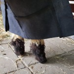 Zorg dat je tussen schort en buik een vinger ruimte houdt. Houd er rekening mee dat je de riem regelmatig bij stelt omdat een ramlam nog groeit maar de wol ook steeds meer plaats inneemt.