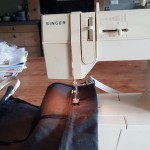 Vouw de onderrand ongeveer 10 cm om, sla de zijkanten naar dezelfde kant om ( zie foto) en naai het geheel vast met de naaimachine.